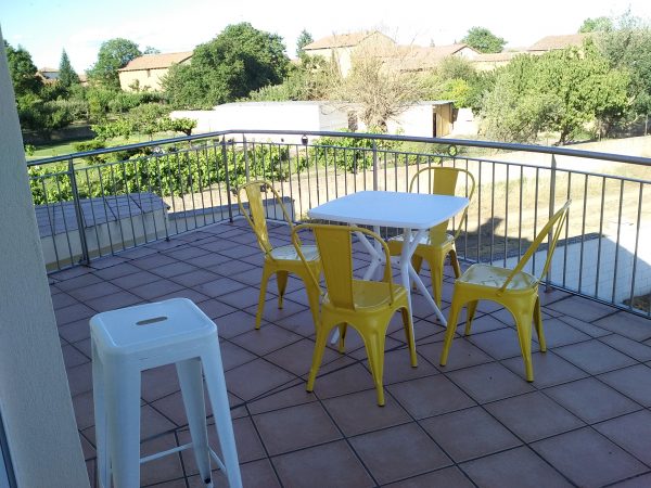 Habitación cuádruple con baño y gran terraza. Orientación sur. Vistas al jardín, piscina y parte principal de la finca. Una ventana y una puerta cristalera a la terraza le proporcionan gran luminosidad. Habitación muy privativa. Probablemente la mejor habitación de la casa.